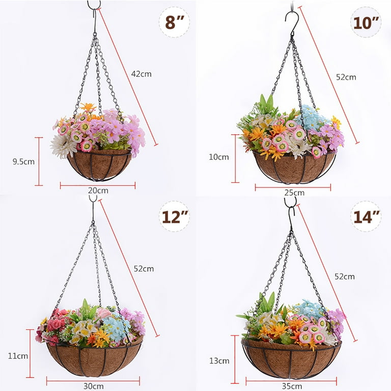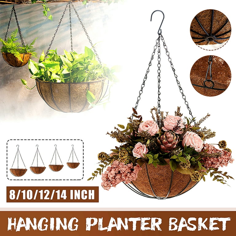 Amazon Com Amagabeli Garden Home 4 Pack 14 Inch Hanging Baskets Planter For Flowers Round Outdoor Indoor Pots Holder Hanger Wire Metal With Coco Liner Chain Large Artificial Plants Decoration Black Basket14